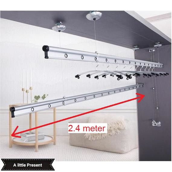 2 4m Ceiling Mounted Drying Rack Hand Lifting Aluminium Rails Shopee Malaysia