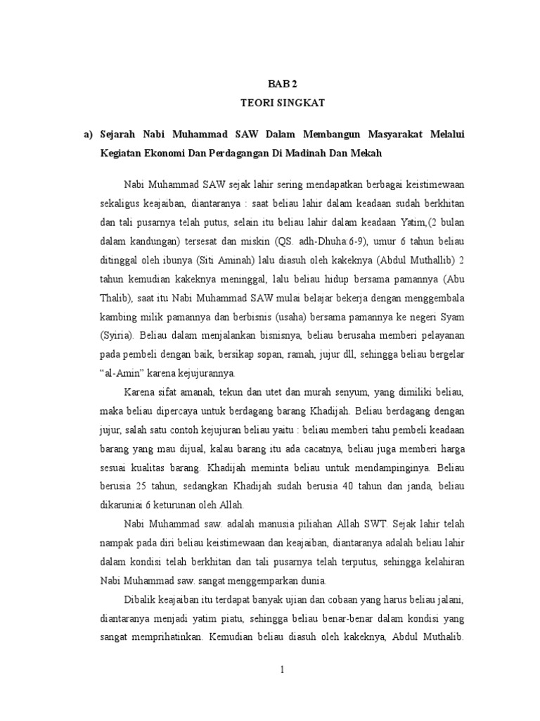 Sejarah Nabi Muhammad Saw Dalam Membangun Masyarakat Melalui Kegiatan Ekonomi Dan Perdagangan 2003 Doc