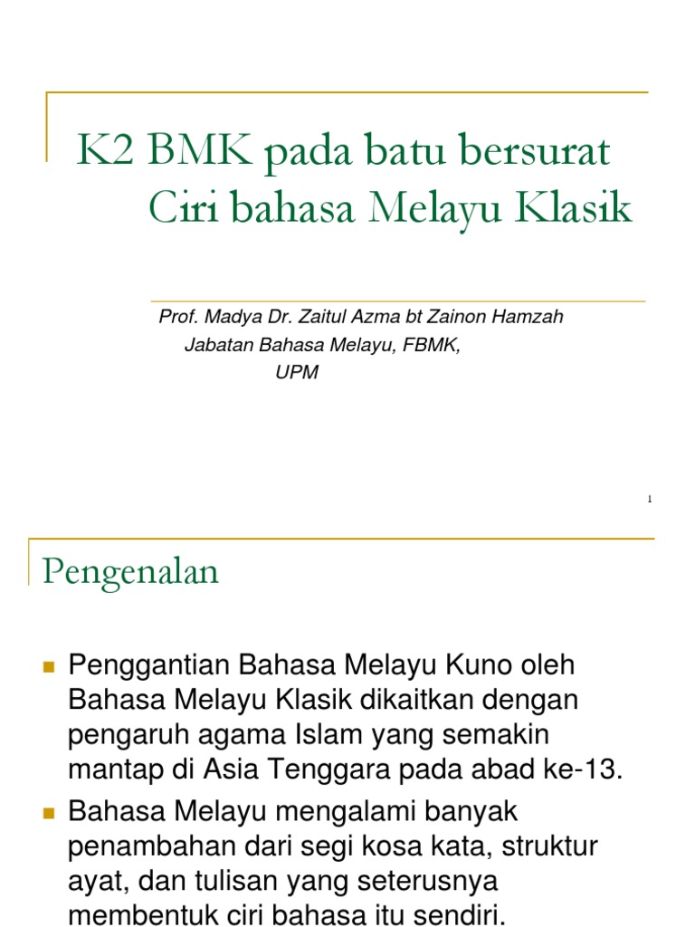 K2 Bmk Pada Batu Bersurat Ciri Bahasa Melayu Klasik Ppt Download