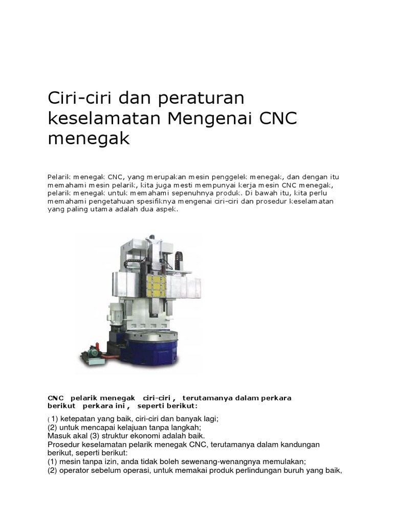 Ciri Ciri Dan Peraturan Keselamatan Mengenai Cnc Menegak