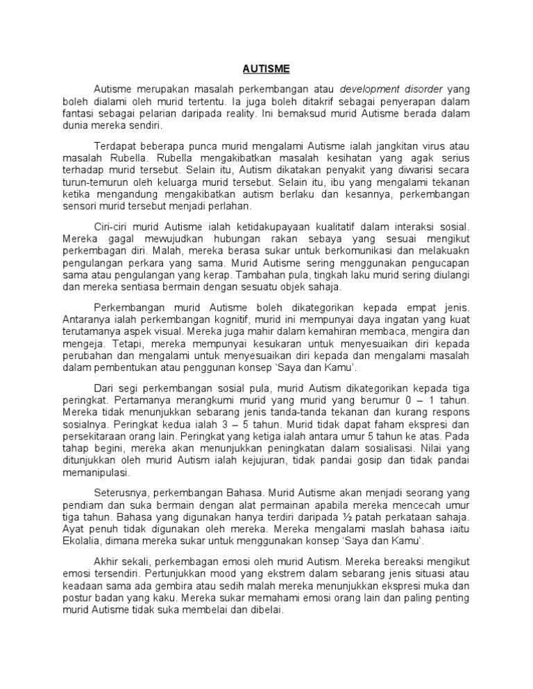 Ciri Ciri Murid Berkeperluan Khas Ciri Ciri Autisme