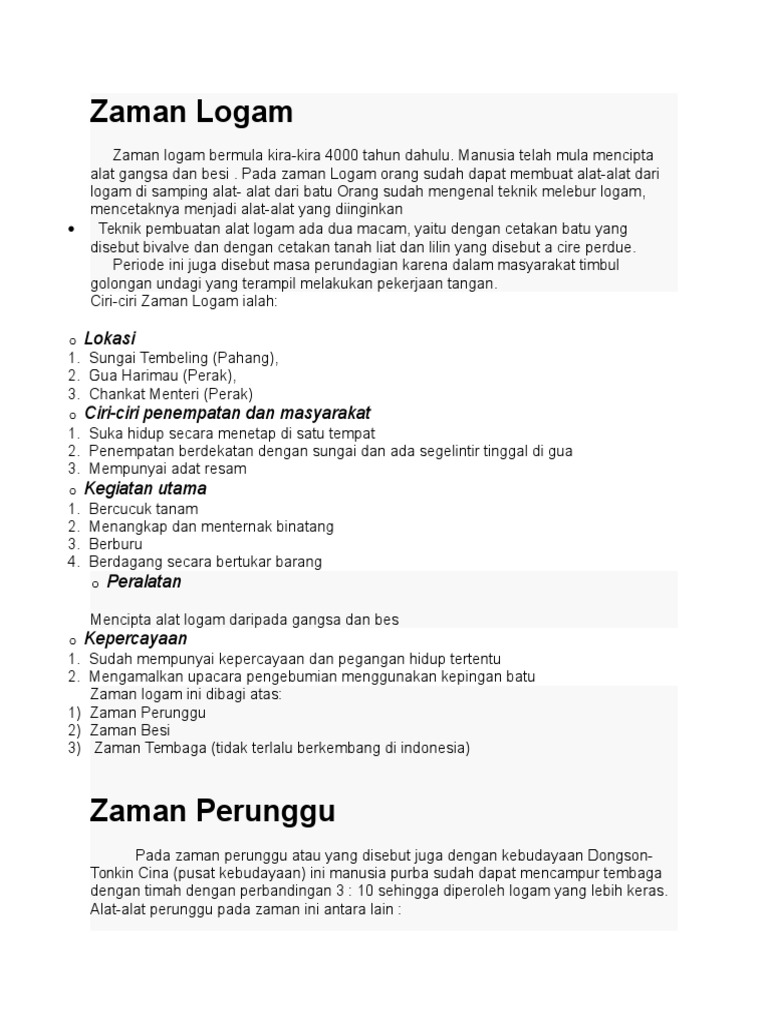 Zaman Logam Dan Pembagian Zaman Logam Rumpun Ips