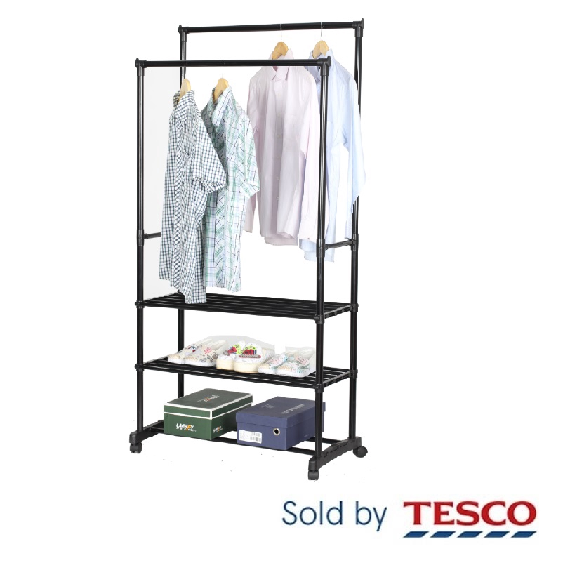 Tesco Double Garment Rack With 2 Shelves Shopee Malaysia