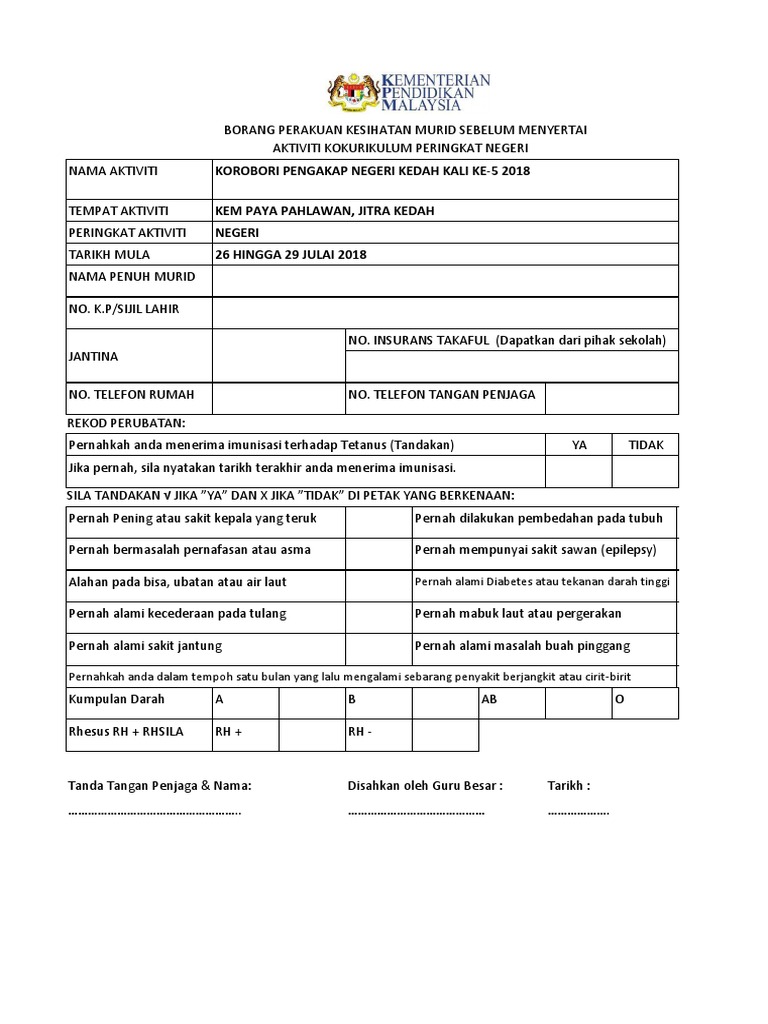 Borang Rekod Peribadi Dan Maklumat Kesihatan Murid Pdf