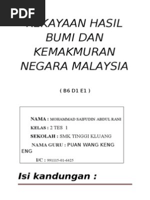 Kekayaan Hasil Bumi Dan Kemakmuran Negara Malaysia