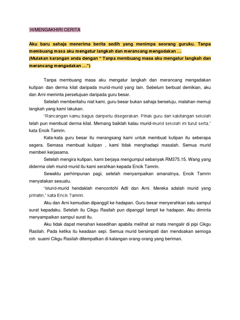 Contoh Karangan Cerita Berakhir Dengan