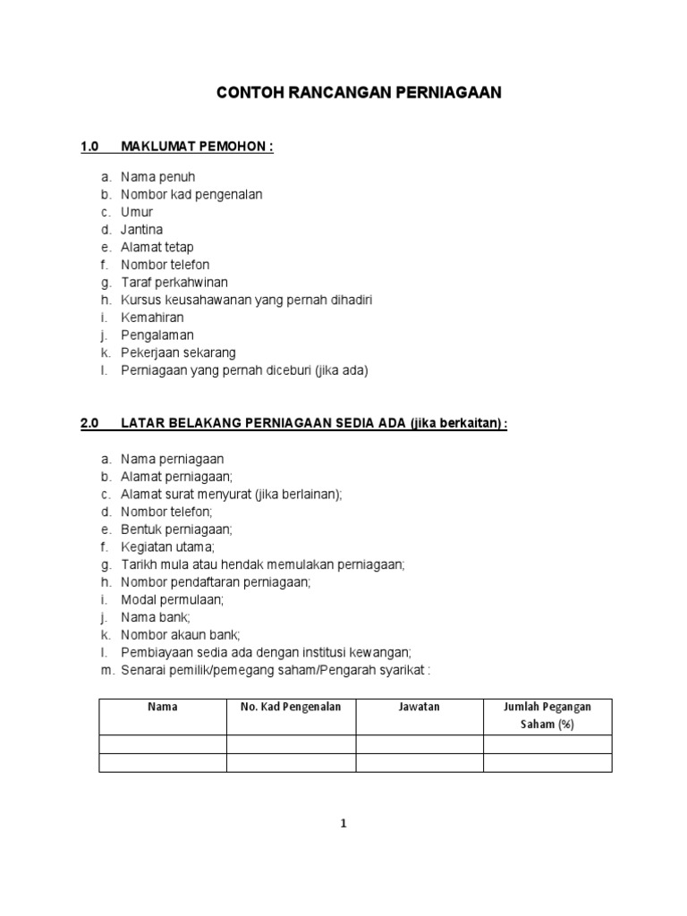 Doc Format Rancangan Perniagaan Rp Skim Tabu Nizam Noah Academia Edu