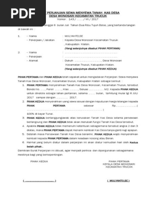 Doc Surat Perjanjian Sewa Tanah Sawah Ganjaran Budi Takioe Academia Edu