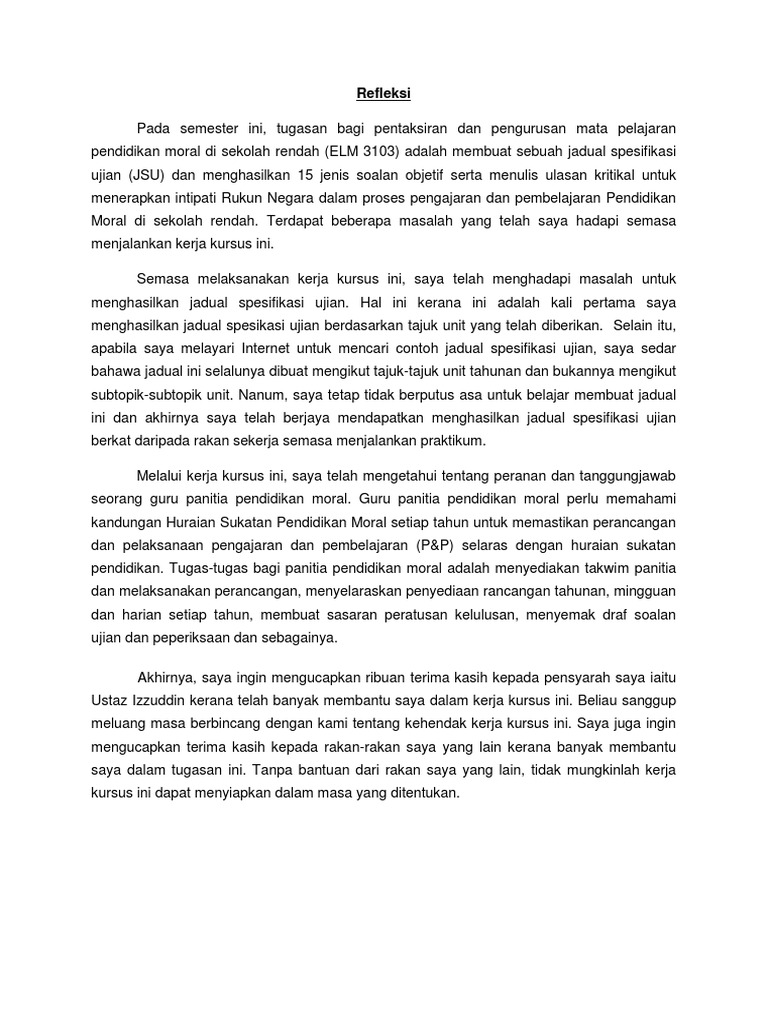 Contoh Rumusan Folio Pendidikan Moral Jawat Kos