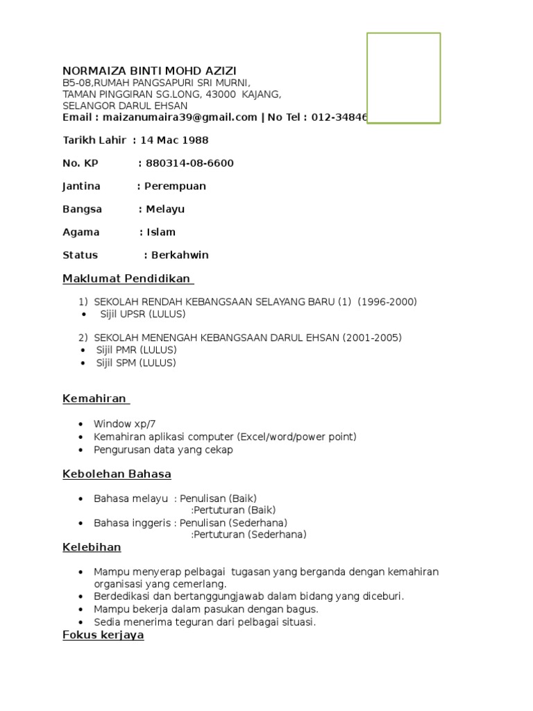 Contoh Resume Lepasan Spm Ringkas Simple Terbaik