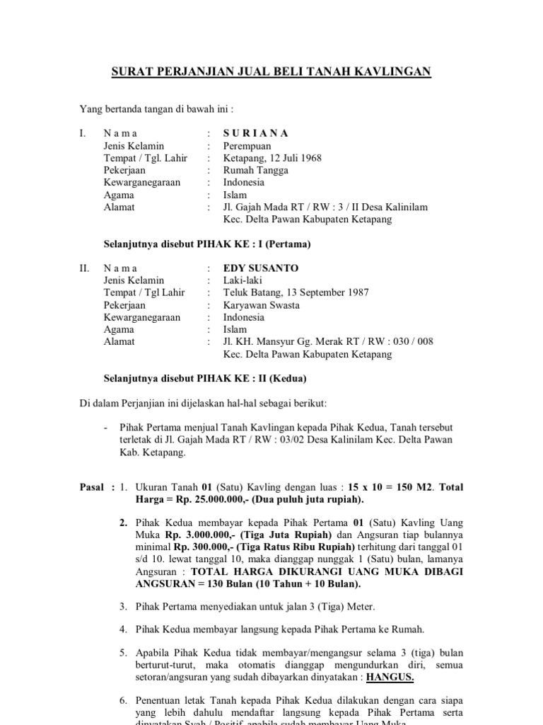 Contoh Surat Perjanjian Jual Beli Tanah Pdf Doc Lamudi