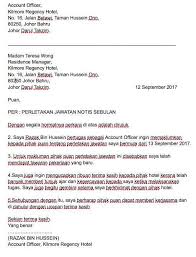 Contoh Surat Perletakan Jawatan Notis Sebulan Contoh Resume