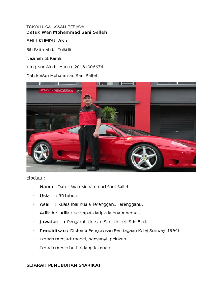 Entrepreneurship Task B A Successful Entrepreneur Datuk Wan Muhammad Sani Salleh