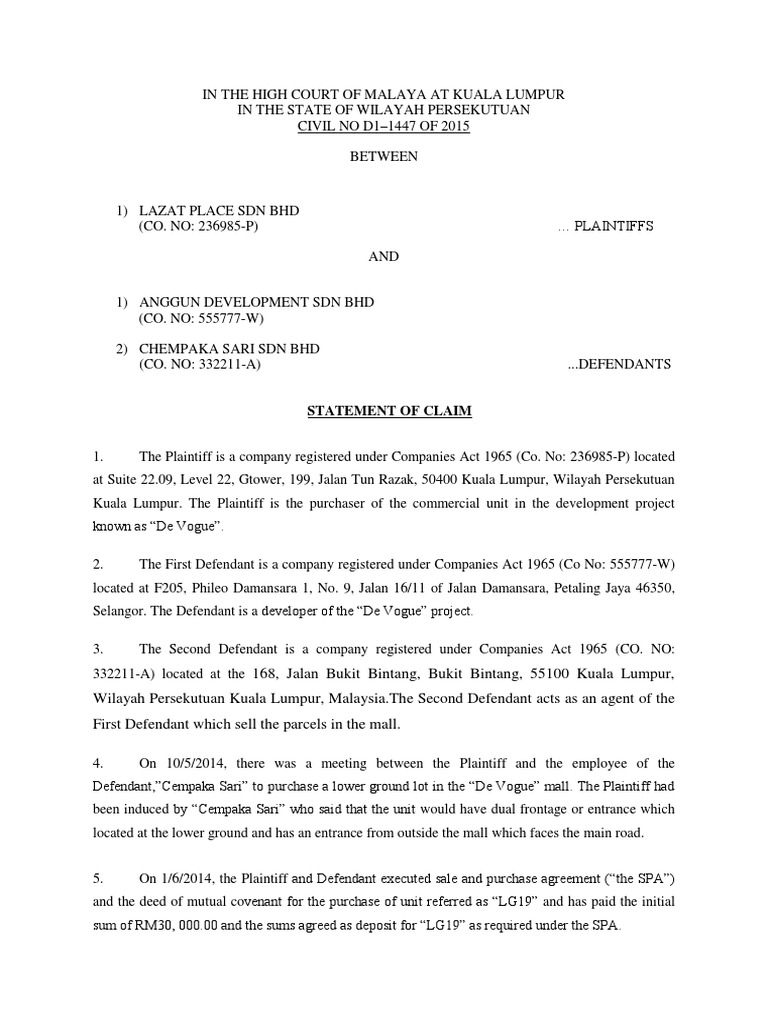 Statement Of Claim Private Law Civil Law Common Law