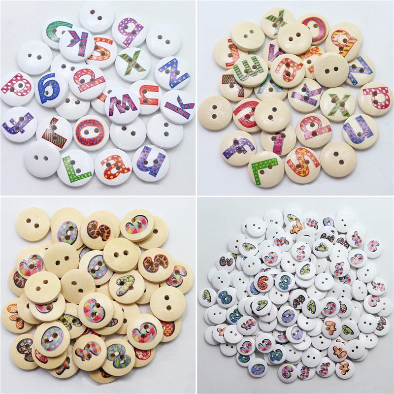 100pcs Wooden Buttons English Alphabet Cartoon Buttons Diy Craft Decor Supplies Shopee Malaysia